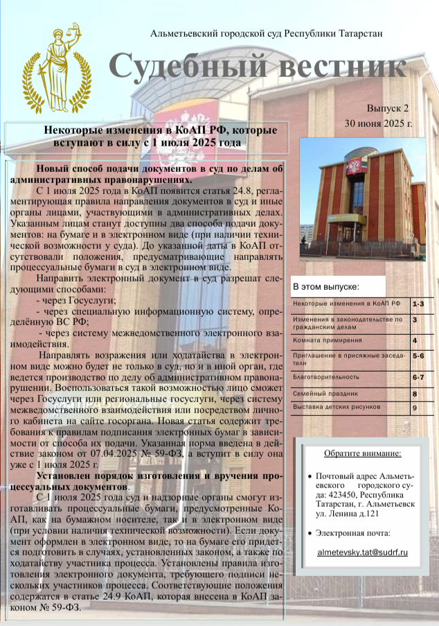Опубликован второй выпуск 2025 года электронной газеты "Судебный вестник". ![]() |