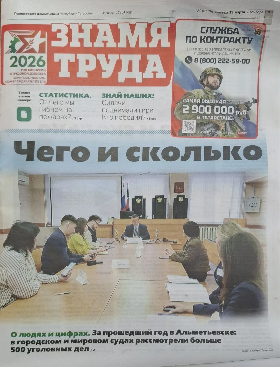 ![]() В газете «Знамя труда» № 9 (12528) от 13.03.2026 опубликована статья об итогах работы Альметьевского городского суда за 2025 год. |