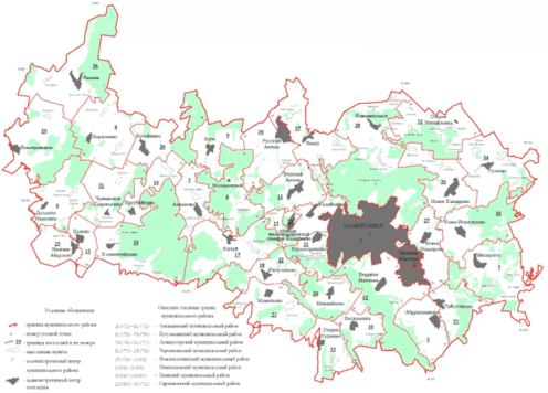 Карта-схема границ муниципальных образований, входящих в состав муниципального образования «Альметьевский муниципальный район»