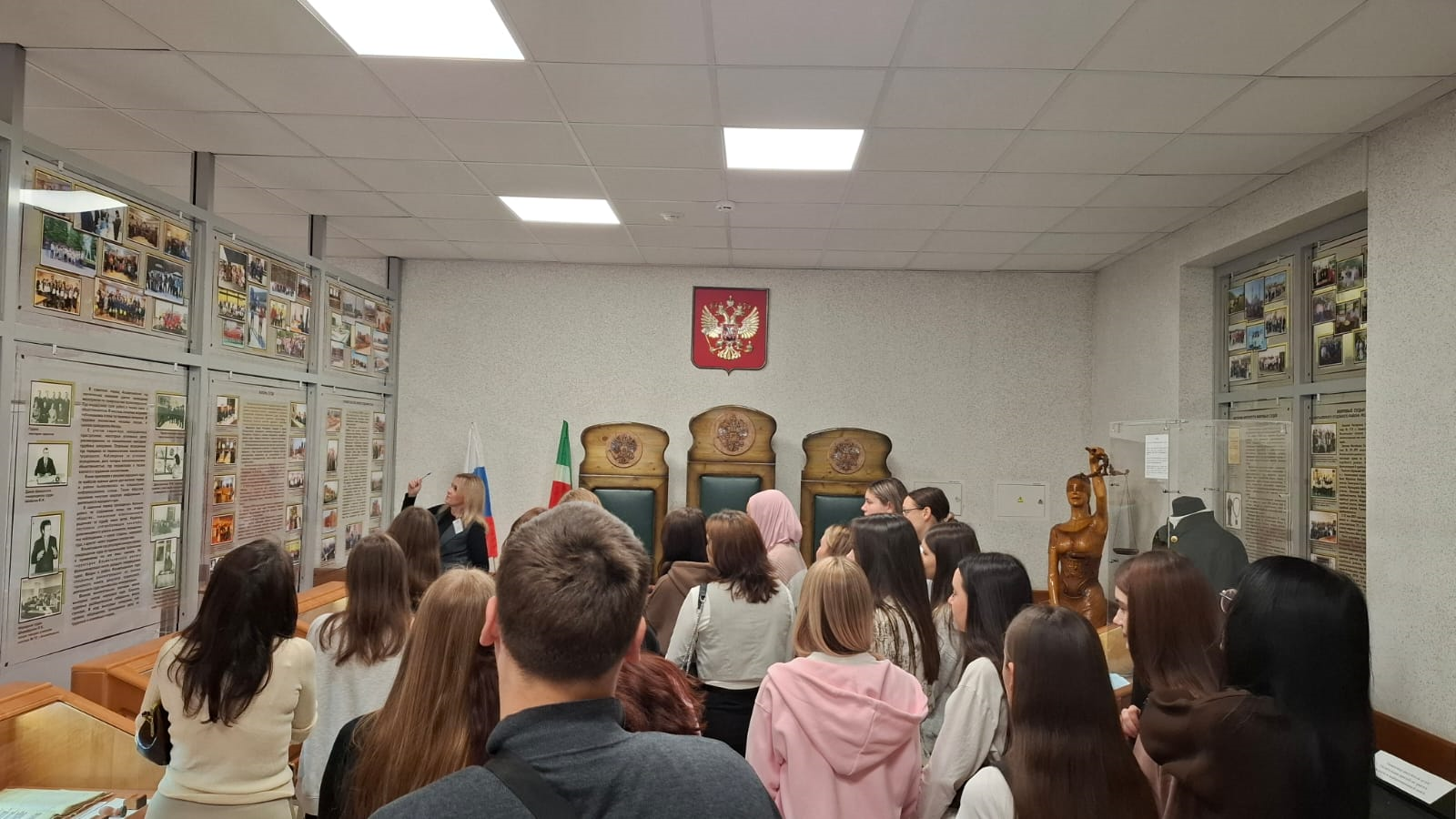 ![]() 15 сентября 2025 года студенты второго курса юридического факультета Альметьевского торгово-экономического техникума в рамках проекта «Правосудие от А до Я» совершили познавательный визит в Альметьевский городской суд Республики Татарстан. Это событие стало частью мероприятий, посвященных 80-летию Победы в Великой Отечественной войне. Экскурсия началась с посещения музея суда, где помощник председателя Лилия Фархутдинова провела для студентов увлекательную экскурсию по истории судебной системы города и района. Она рассказала о выдающихся личностях, возглавлявших городской суд в разные годы, а также о жизни судейского сообщества, включая спортивные и культурные мероприятия, организуемые Верховным судом РТ, Управлением Судебного департамента в РТ и органами судейского сообщества. Особое внимание было уделено стендам, посвященным судьям-ветеранам Великой Отечественной войны Хурматуллину А.Г. и Мубаракшину З.М. В информационном киоске студенты посмотрели фильм, созданный сотрудниками городского суда и мировыми судьями в память о своих родственниках – участниках войны. После знакомства с музейными экспонатами, часть студентов получила возможность присутствовать на реальном судебном заседании по уголовному делу, рассматриваемому по части 1 статьи 264.1 Уголовного кодекса Российской Федерации. Наблюдение за ходом процесса позволило будущим юристам увидеть практическую сторону своей будущей профессии, оценить ее важность, ответственность и сложность. Такой опыт, несомненно, станет мощным стимулом для более глубокого изучения уголовно-правовых дисциплин и получения необходимых знаний. Экскурсия оказалась не только познавательной, но и по-настоящему увлекательной. По завершении встречи студенты выразили искреннюю благодарность сотрудникам суда за интересное и содержательное время. Пресс-служба Альметьевского городского суда. |